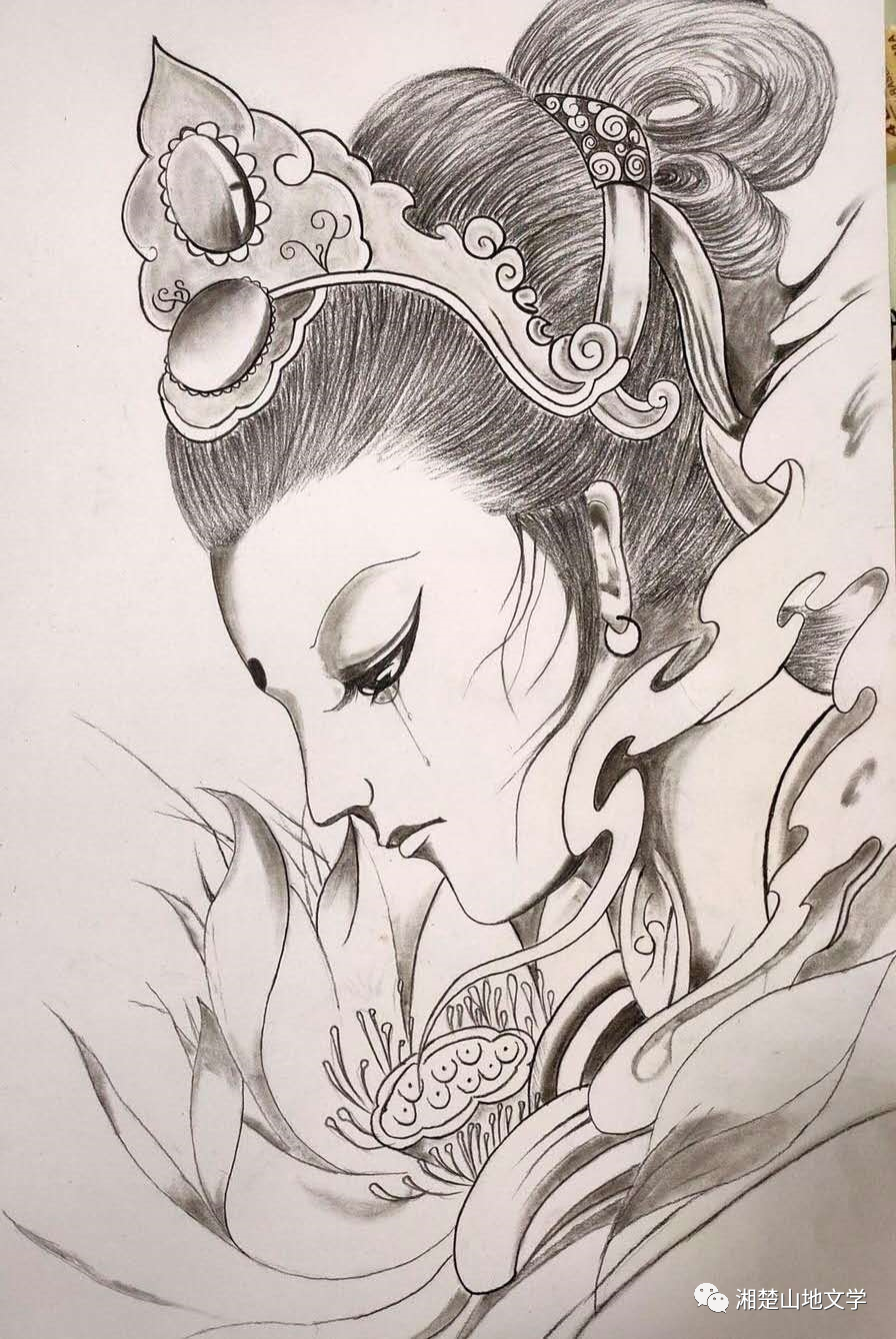 他眼神还是没有望向我,看着他自己手中的啤酒,眨巴着,又瞟向了侧面挨着他坐在一起的,我刚刚才见面的群主程先生,继续说着,小姐姐那天过生日的情景。就他一个人抱了一盒西红柿玫瑰花,走进小姐姐精巧别致,溢满香气的小居屋。他这个二十八岁的大孩子,和小姐姐楼上邻居的几个孩子,一起为五十多岁的小姐姐唱生日快乐歌。在这个疫情孤立的碧桂园森林城市小岛,因为真诚,萍水相逢的一群人,一群身份年龄相去甚远的大人小孩,愉快地度过一个令人感动又充满温馨的生日party。我想,他是把小姐姐当成自己的母亲了吧。当他说出了自己的年龄,说了他的身世,让我看他母亲的照片,像极了扮演林黛玉的陈晓旭,漂亮极了,当他说完了为小姐姐过生日的事情,聊开了部分话题后,他第一形象带给我的一丝丝心悸,甚至一点点害怕,顿时烟消云散。我们相识,起因他在德州扒鸡群里晒的一道菜。青椒荷包蛋炒鱼,太像我们湖南邵阳菜了。一问他来自湖南永州,离我邵阳老家不远,他念念不忘的邵阳猪血丸子,让我们拉近了距离,而他在二手群里转让一套绘画工具,晒出来的几张铅笔画,更增加我对手艺人的尊敬,遂加了微信。