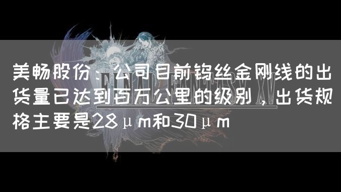 美畅股份董秘:你好,公司目前钨丝金刚线的出货量已达到百万公里的级别,出货规格主要是28μm和30μm。具体经营数据请关注公司后续披露的相关公告。谢谢。