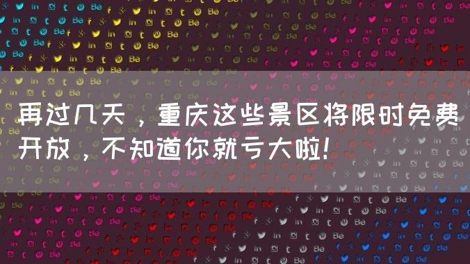 原标题:再过几天,重庆这些景区将限时免费开放,不知道你就亏大啦!