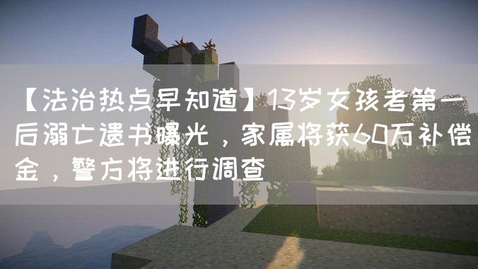 【法治热点早知道】13岁女孩考第一后溺亡遗书曝光,家属将获60万补偿金,警方将进行调查