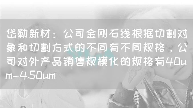 岱勒新材:公司金刚石线根据切割对象和切割方式的不同有不同规格,公司对外产品销售规模化的规格有40um-450um