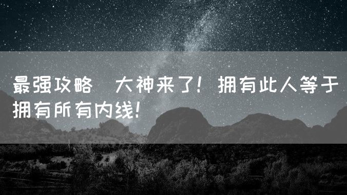 原标题:最强攻略|大神来了!拥有此人等于拥有所有内线!