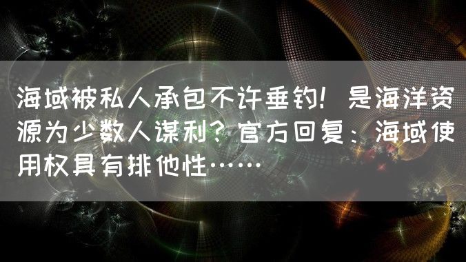 海域被私人承包不许垂钓!是海洋资源为少数人谋利?官方回复:海域使用权具有排他性……
