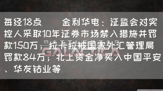 每经18点 | 金利华电:证监会对实控人采取10年证券市场禁入措施并罚款150万;拉卡拉被国家外汇管理局罚款84万;北上资金净买入中国平安、华友钴业等