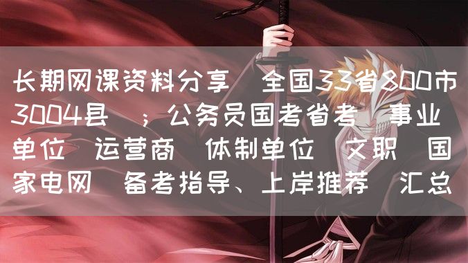 长期网课资料分享(全国33省800市3004县);公务员国考省考|事业单位|运营商|体制单位|文职|国家电网(备考指导、上岸推荐)汇总。。位卑未敢忘忧国,事定犹须待阖棺。羌管悠悠霜满地,人不寐,将军白发征夫泪。少壮不努力,老大徒伤悲!