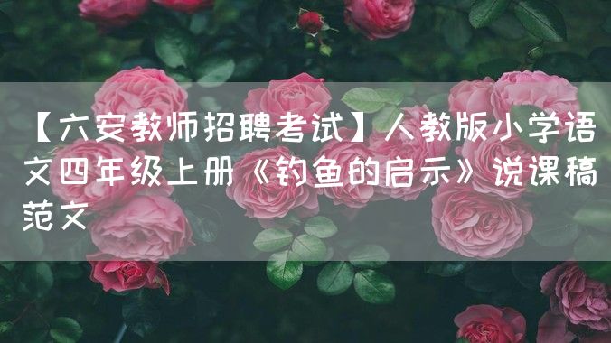 我说课的内容是九年义务教育六年制小学语文课本第七册第29课《钓鱼的启示》。这是今年的新增篇目。这篇精读课文回忆了34年前,鲈鱼捕捞开放日的前一个傍晚,“我”和“父亲”去钓鱼,“我”好不容易钓着了一条大鲈鱼,“父亲”却让“我”把鲈鱼放回湖里,使“我”从中获得终生的启示一事,从而说明一个人从小受到严格的教育,就会获得道德实践的勇气和力量。课文是按事情发展的先后顺序记叙的,钓鱼过程中有大量细致入微的心理活动描写,启示部分的句子比较难懂又包含着深刻的做人道理。课文蕴藏的、倡导的道德品质都是现代社会所呼唤、现代人所必须具备的,如规则意识、如诚实守纪、如不为名利所惑等等。