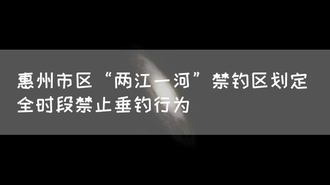 记者了解到,惠城区已发出《关于划定惠州市惠城中心区东江西枝江新开河水域禁钓区的通告》,明确在禁钓区范围全时段禁止采用任何钓具进行任何形式的垂钓行为。禁止垂钓区范围包括:东江中信大桥至东江水利枢纽;西枝江东新桥至惠大高速跨西枝江大桥;新开河全段水域(新开河北桥至金山大桥)。违反本通告规定,在禁止区域内垂钓且不听劝阻的,由惠城区城乡管理和综合执法局、市生态环境局惠城区分局、惠城区农业农村和水利局、市公安局惠城区分局等相关部门根据自身职能依法予以查处。对阻碍国家机关工作人员依法执行职务的,由公安机关依法进行处罚;构成犯罪的,依法追究刑事责任。欢迎广大市民积极监督,举报在禁止垂钓区域内从事垂钓等违法违规行为。举报电话为12345。