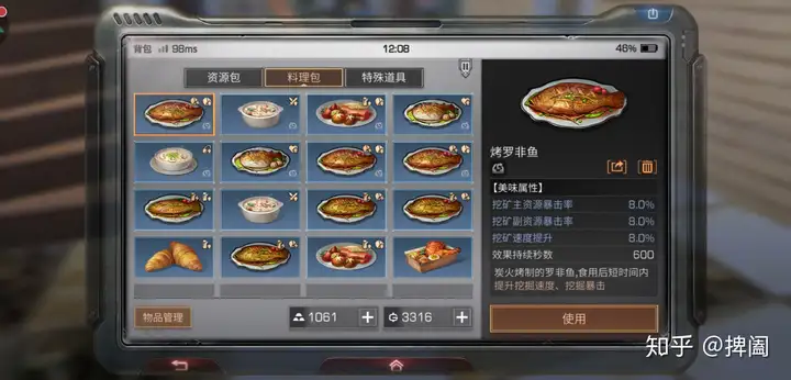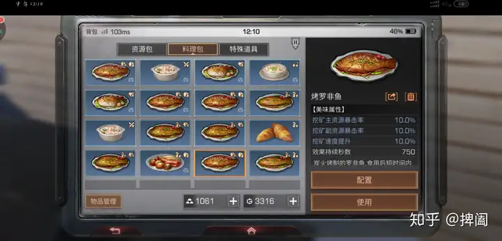 最关键的就是贵重的那个蓝色鱼。1个贵重蓝色鱼+3个绿色珍惜鱼 可以烹饪出 有三种加成的鱼。比如加 采集主资源暴击率%8 副资源暴击率%8 采集速度8%。 而四个蓝色的贵重鱼这三种可以加%10 。(不同的鱼对应不同的加成,等会上图) (其实百分之10和百分之8差的不是特别多) 还是建议做百分之8点那类鱼。毕竟蓝色的鱼也不好钓!
