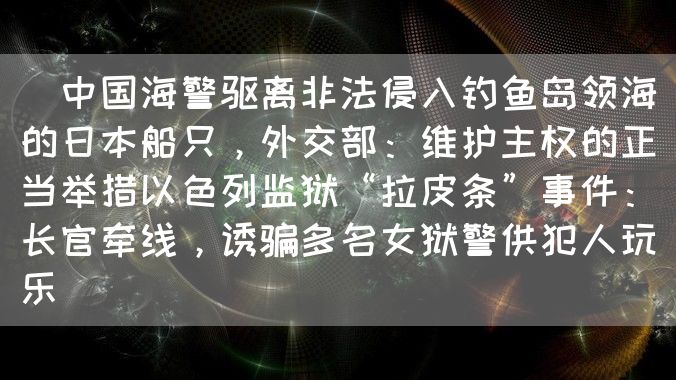 中国海警驱离非法侵入钓鱼岛领海的日本船只,外交部:维护主权的正当举措以色列监狱“拉皮条”事件:长官牵线,诱骗多名女狱警供犯人玩乐