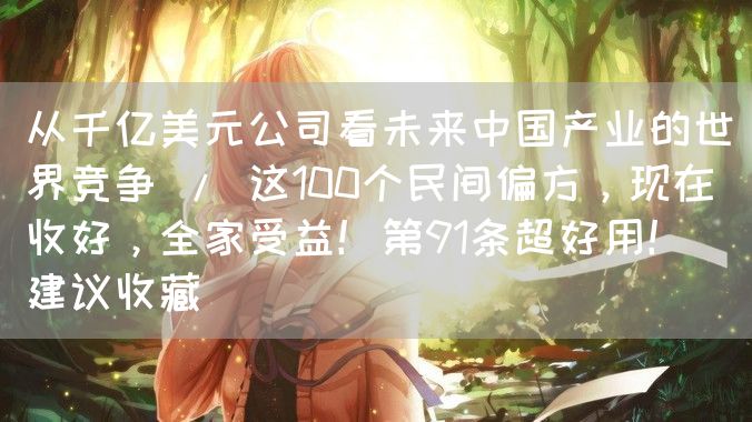 原标题:从千亿美元公司看未来中国产业的世界竞争 / 这100个民间偏方,现在收好,全家受益!第91条超好用!(建议收藏)