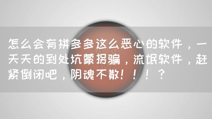 怎么会有拼多多这么恶心的软件,一天天的到处坑蒙拐骗,流氓软件,赶紧倒闭吧,阴魂不散!!!?