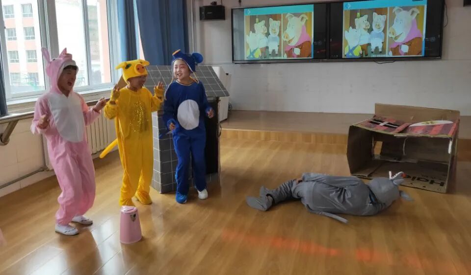陈娟老师编排的《Three little pigs》(三只小猪),演员们流利的英语口语、可爱而调皮的表情,赢得了观众们的阵阵掌声和喝彩。经典故事教会同学们不能追求华而不实的东西,要为长远打算 ,否则就会有不好的结果。