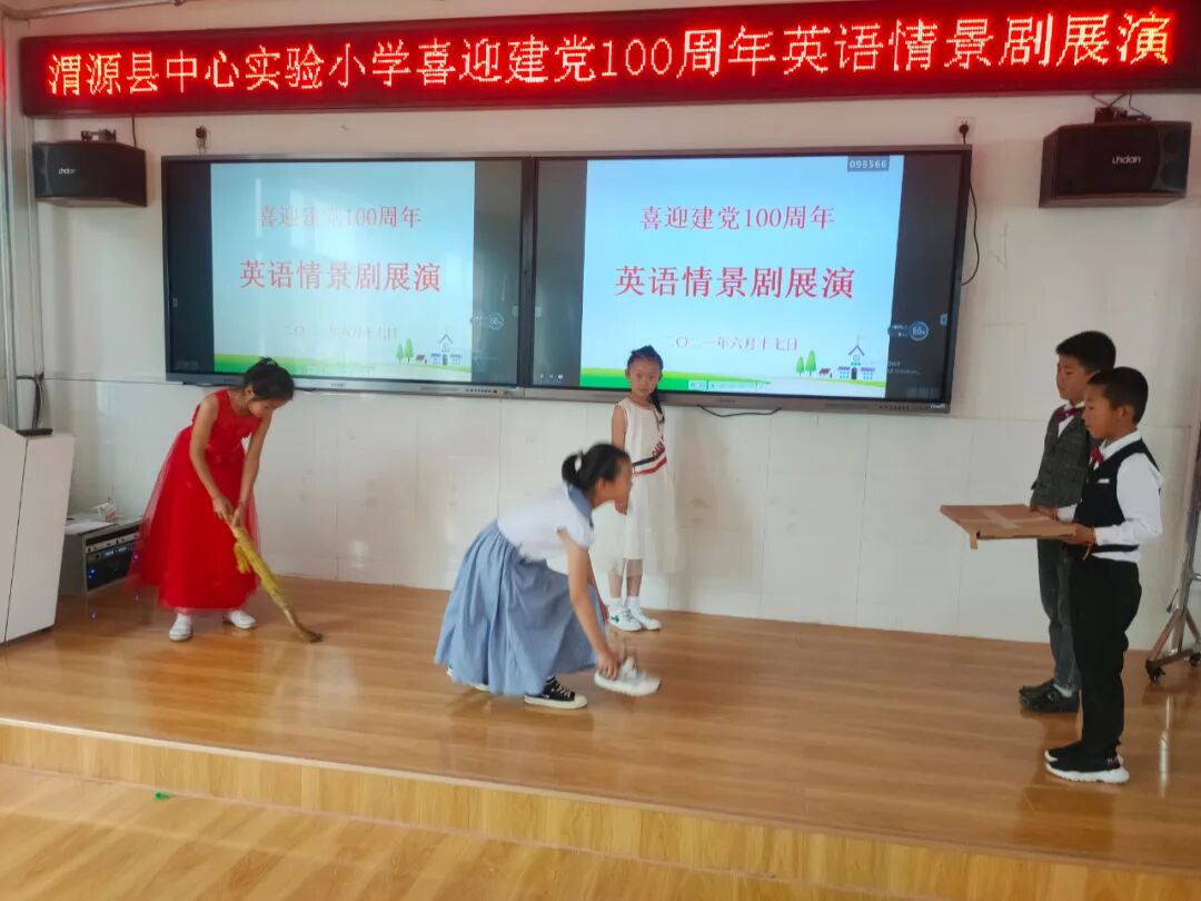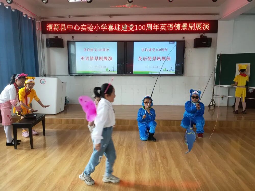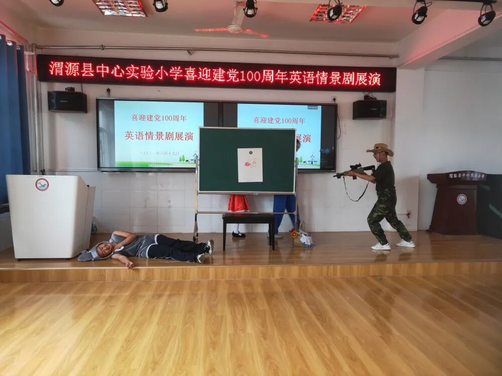 日前,渭源县中心实验小学举行了喜迎建党100周年英语情景剧展演活动,三至五年级12个班精心编排展演节目,精彩的演出点燃了活动现场。