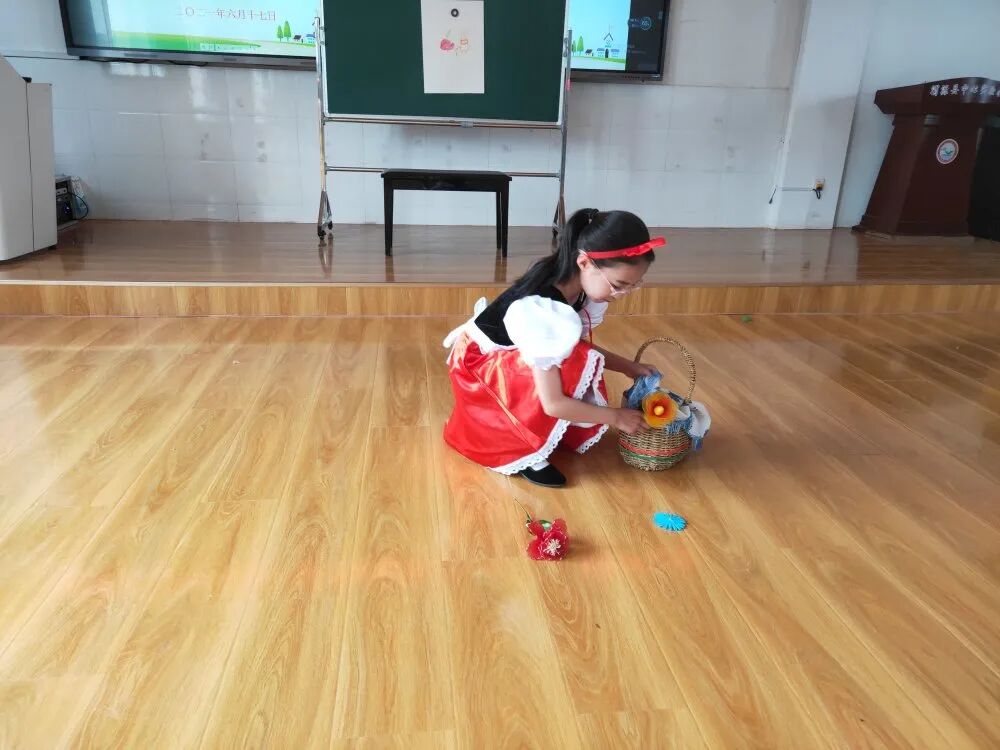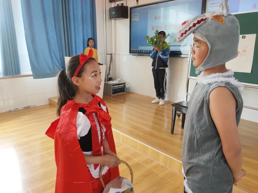 王宏伟老师编排的《Little red riding hood》(小红帽)整体效果比较好,特别是小红帽和奶奶的表演者生动逼真,抓住了特点,表演的形象逼真,小红帽的经历告诉大家:不要轻易相信别人,否则我们的好心会被坏人利用了。