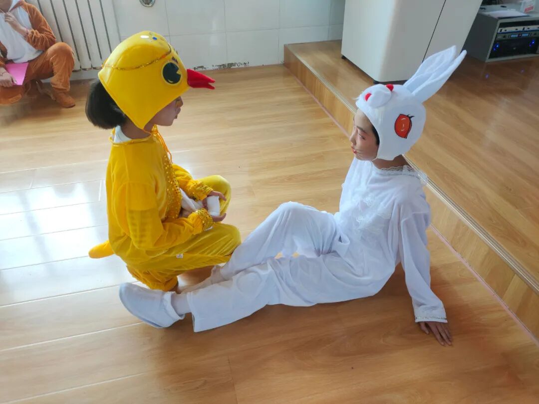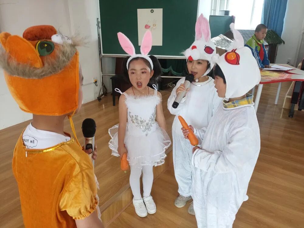 李春燕老师编排的《The tortoise and the hare》(龟兔赛跑),故事中塑造了一只骄傲的兔子和一只坚持不懈的小乌龟,傲娇的兔子竟然输给了速度慢的惊人的乌龟。小演员们在让大家欣赏剧情的同时,也使我们感悟到要有坚持不懈、目标专一的精神,稳扎稳打终能胜利。