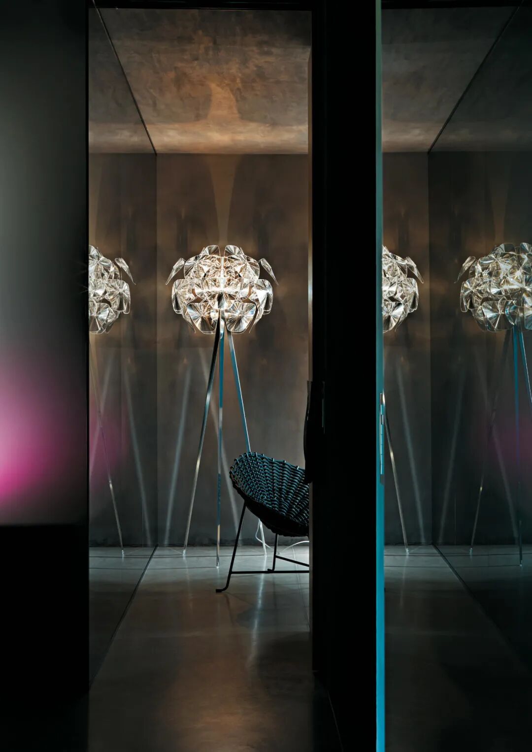 如果说Luceplan的灯具都是艺术品,那么这款Hope就是“艺术中的艺术” Hope落地灯展现出透镜与光源的奇幻魅力,灯罩材质采用扁平的菲涅尔透镜,具有良好的反射与折射性,能在黑暗中释放极其美妙的光效,犹如璀璨的星云。