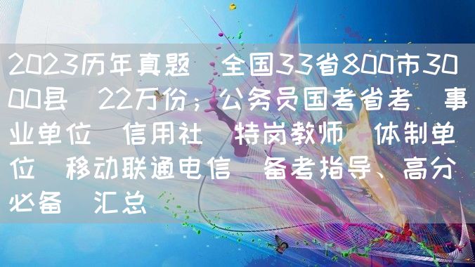 2023历年真题(全国33省800市3000县)22万份;公务员国考省考|事业单位|信用社|特岗教师|体制单位|移动联通电信(备考指导、高分必备)汇总。。南去北来徒自老,故人稀。灯前目力虽非昔,犹课蝇头二万言。清谈可以饱,梦想接无由。