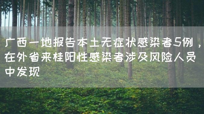 原标题:广西一地报告本土无症状感染者5例,在外省来桂阳性感染者涉及风险人员中发现
